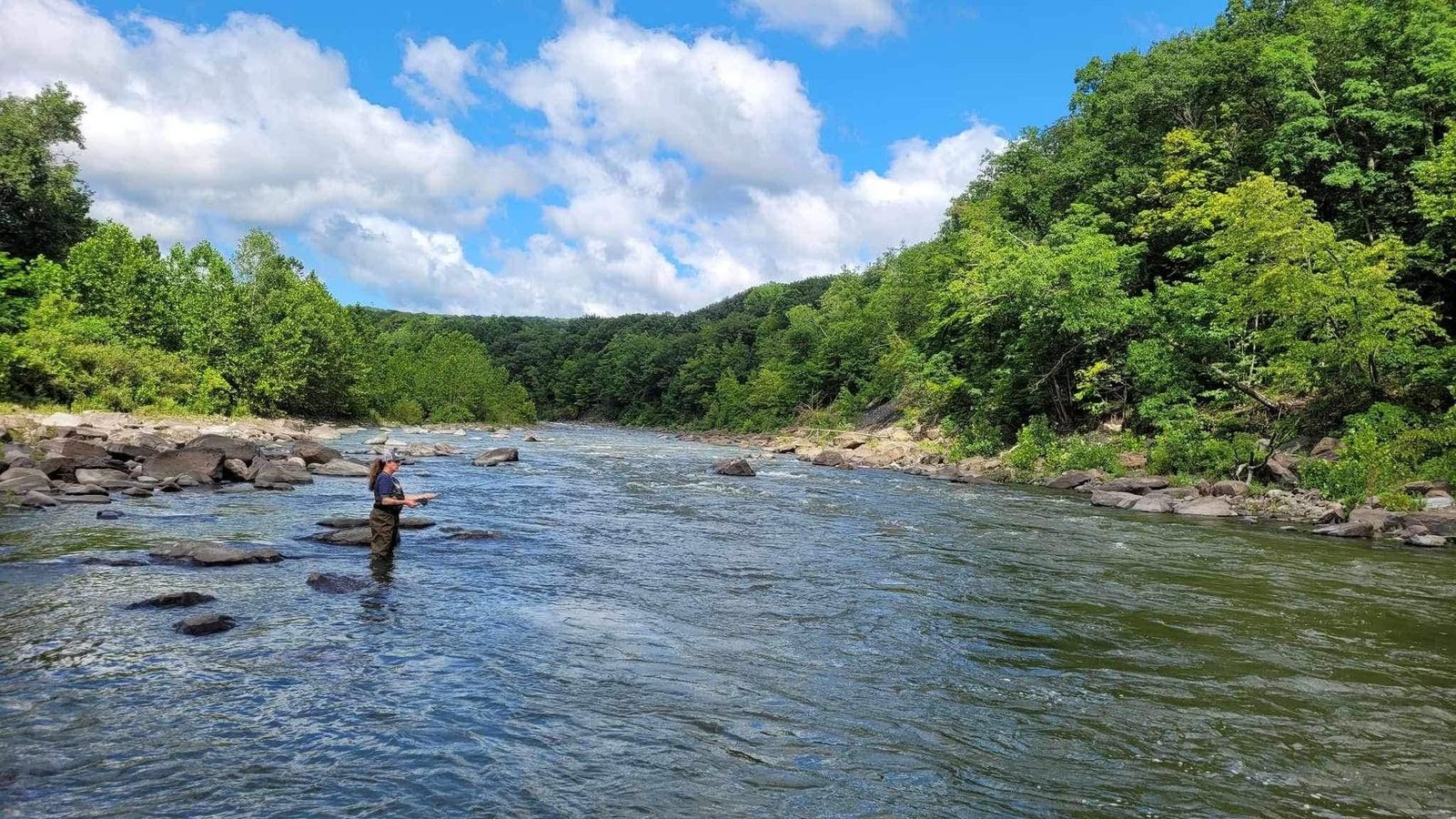 We met up recently to do some fly fishing on the Schoharie Creek in New York targeting bass. The weather was perfect: sunshine, blue skies, and about 70 degrees. The fishing conditions weren’t ideal. A storm front has moved through the day before, churning and raising the creek level just a bit. Not enough to deter us, but enough to keep the fish from being super active.