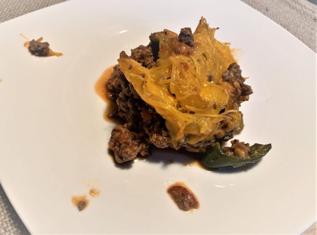 - Repeat meat, peppers, cheese (I added a little extra cheese to the top).