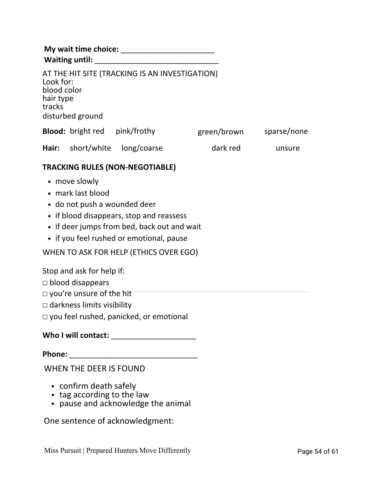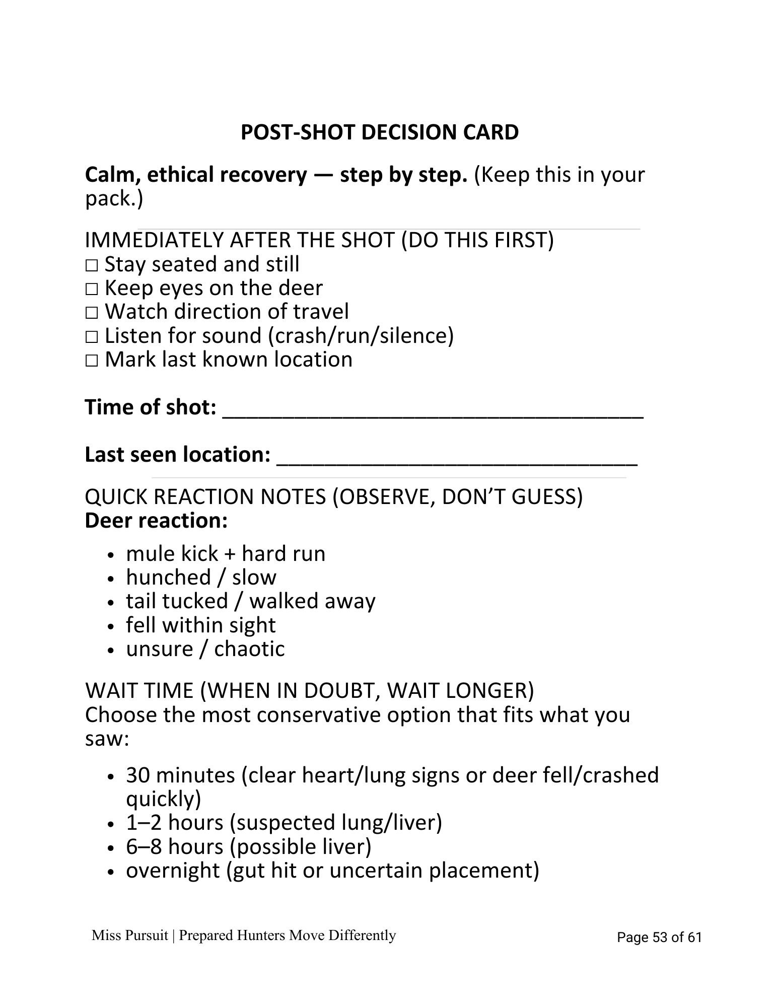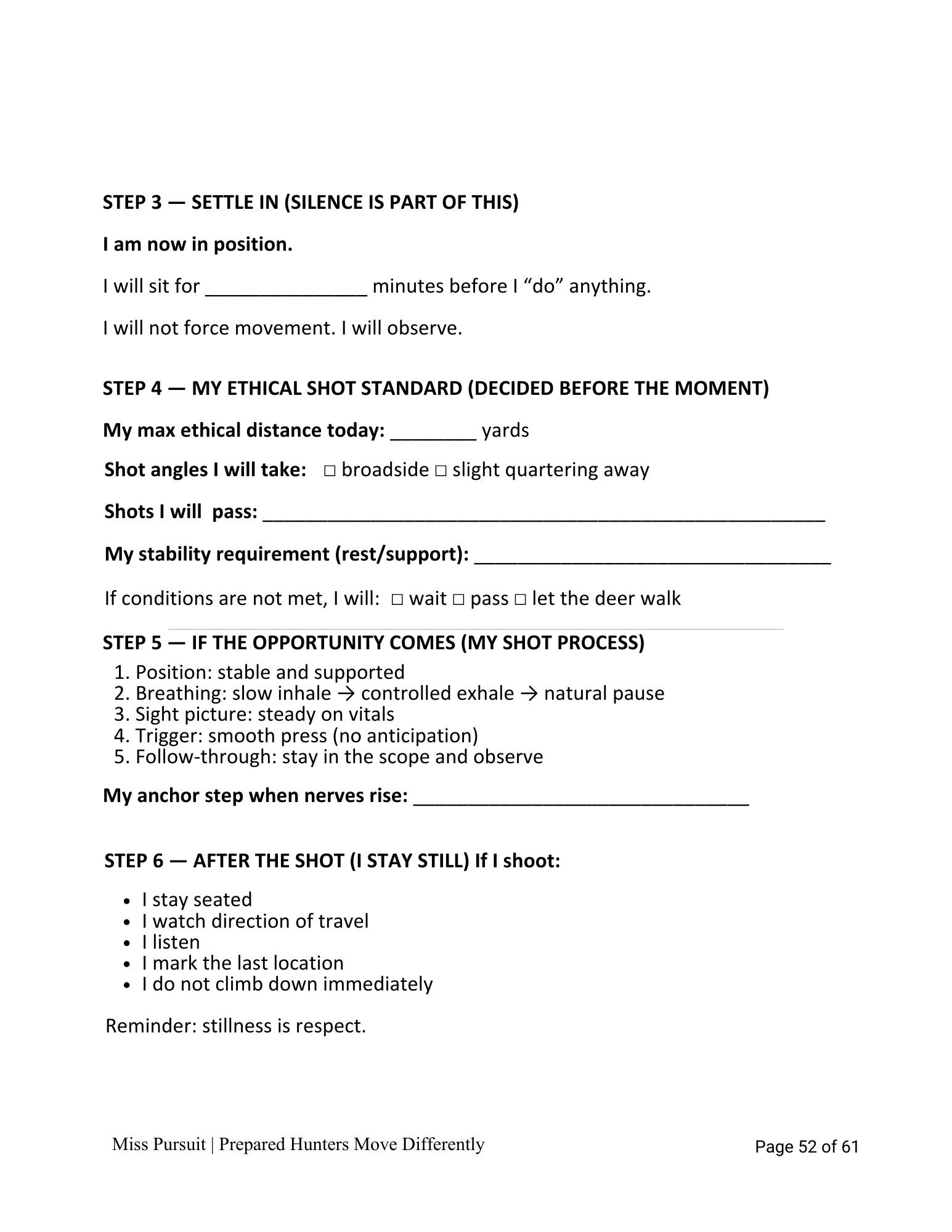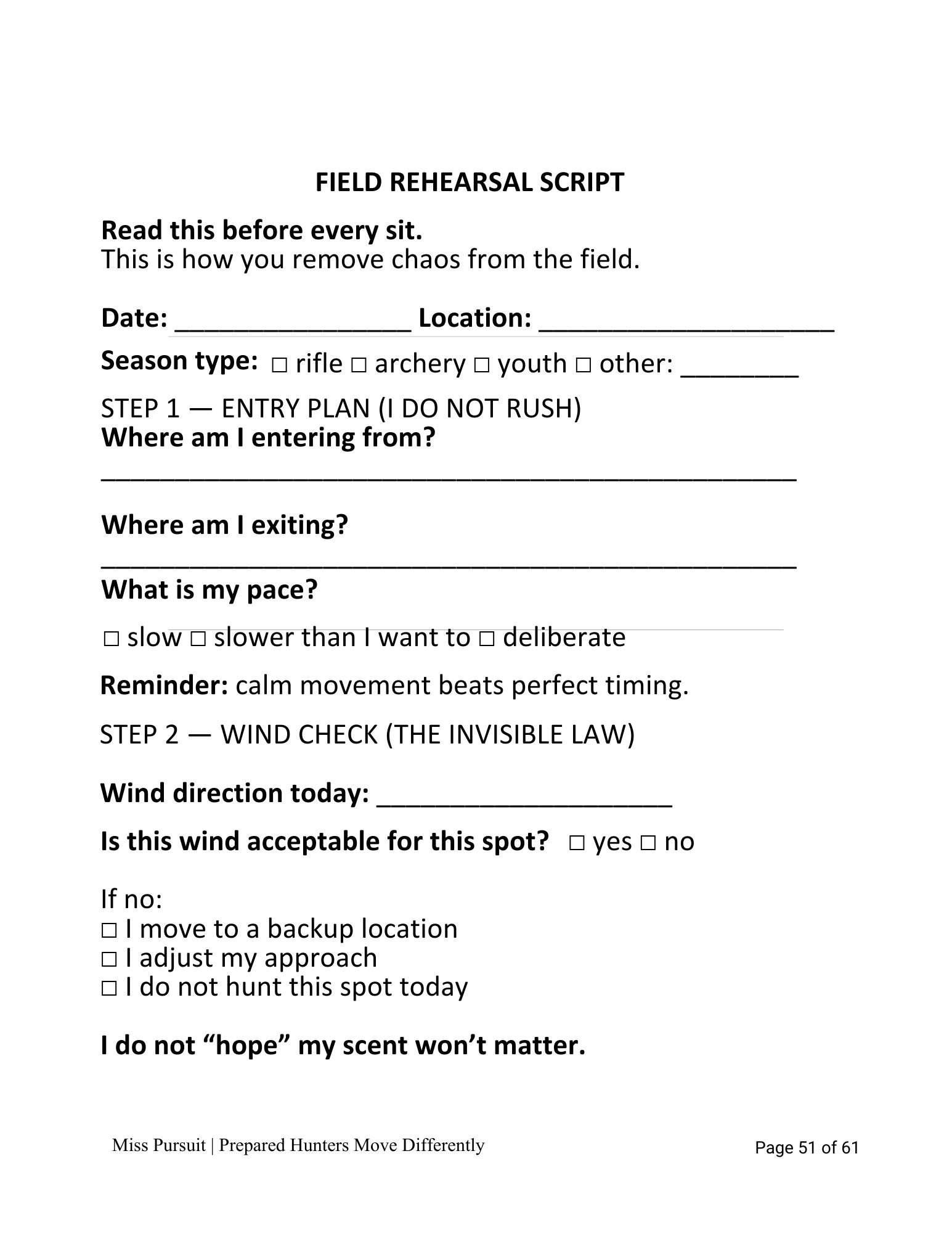 • A walk-through script before entering your hunting area