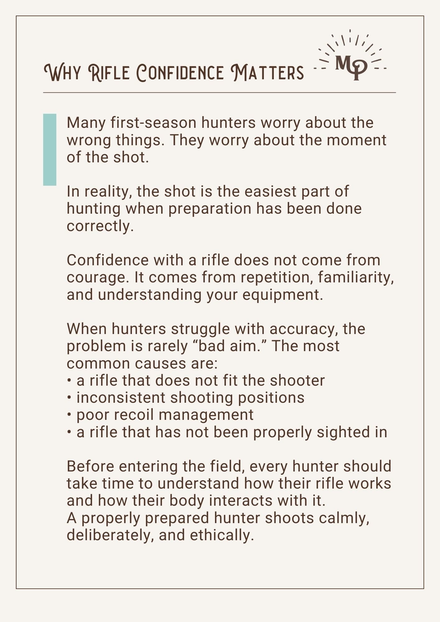 Many first-season hunters assume shooting confidence comes naturally. It doesn’t. Most missed shots happen because of a few simple issues: