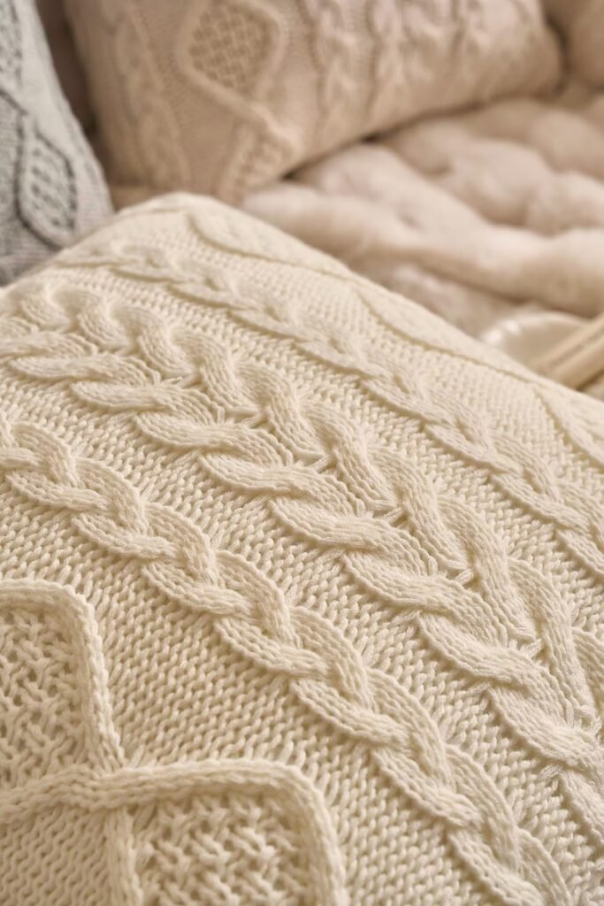 Cable knitting with a diamond check pattern easily goes with different styles of home décor.