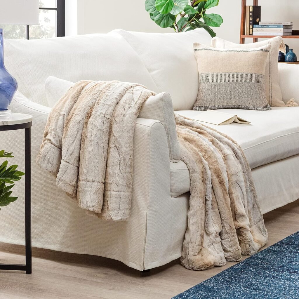 Elegant Fuzzy Faux Fur Throw Blanket in Coffee and White